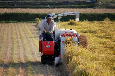稲刈り、一休み