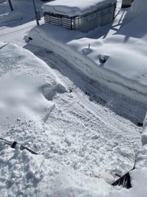 久しぶりにいい天気だったので、作業場の屋根の雪下ろしをしました。 休憩中に撮った屋根の上からの写真。 子供の頃よりかなり雪の量も減りましたね。 昔は2階の高さから雪の階段降りて玄関に入ってました(^_^)